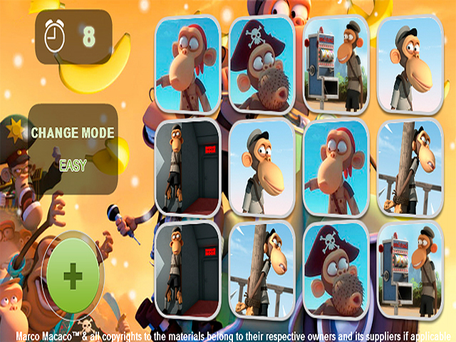 Çok şahane çizgi filmin başta Marco adlı maymun ve diğer karaterleriyle bir kez daha buluşun! Kahraman Maymun Hafıza Oyunu adlı yeni bağımlılık yapan Bulmacaya atılın ve hafıza becerilerinizi sınayın. Bu unutulmaz başeseri seyretmişseniz, o halde plaj memuru Marco ve sevimli sevgilisi Lulu ile bir kez daha buluşmakla memnunluk duyarsınız. Süre kısıtlı olduğundan benzer resim çiftlerini mümkün olduğunca hızlı bir şekilde bulmaya çalışın. Kahraman Maymun Hafıza Oyunu adlı eğlenceli Bulmacayı ister indirin ister tamamen bedavaya çevrim içi oynayın.